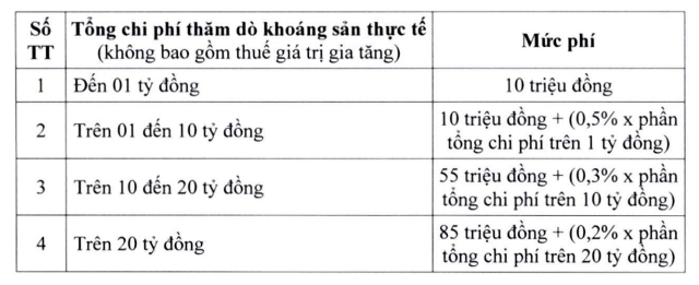 Mức thu phí thẩm định đánh giá trữ lượng khoáng sản thấp nhất 10 triệu đồng